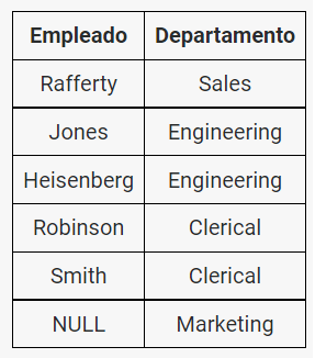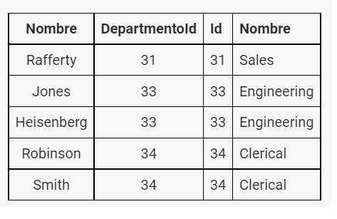 La tabla de la izquierda es Empleados, mientras que Departamentos es la tabla de la derecha.
